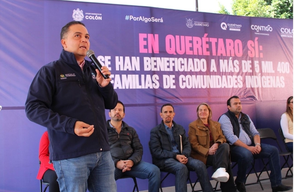 Derivado de la firma de convenios de colaboración entre el Poder Ejecutivo del Estado de Querétaro y los gobiernos municipales de Colón y Tolimán, el secretario de Gobierno, Eric Gudiño Torres encabezó la entrega de los apoyos del Programa “Contigo para el Desarrollo Integral de los Pueblos Indígenas de Querétaro con Perspectiva de Derechos Humanos”, los cuales representan una inversión total de cinco millones 865 mil pesos en beneficio de 68 localidades de Colón, Tolimán y Cadereyta.