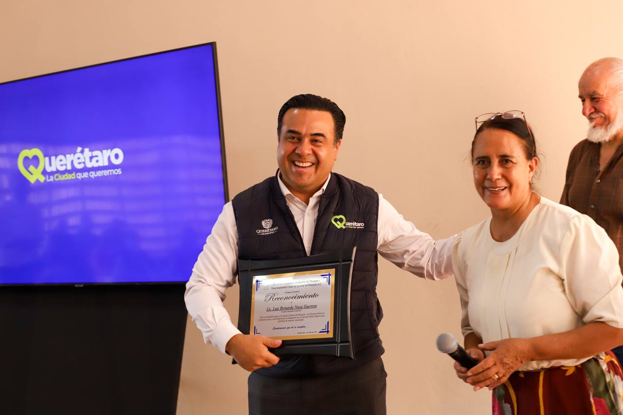 Los integrantes de Comité Pro Obra, así como del Comité de la Asociación Civil de la Colonia Quintas del Marqués, entregaron un reconocimiento a Luis Nava, por su trabajo realizado en beneficio del bienestar y la mejora de la calidad de vida de los vecinos de la colonia.