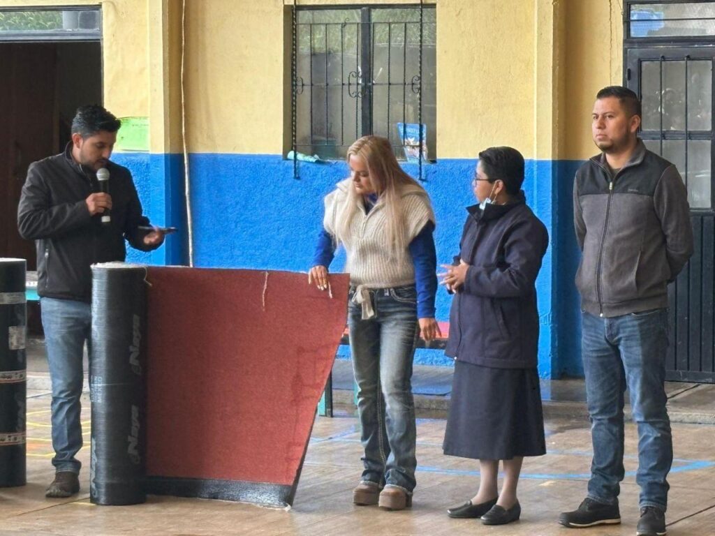 Esta acción beneficiará a la comunidad escolar mediante la aplicación del material en una superficie de 250 metros cuadrados, con una inversión total de 115 mil pesos que incluye materiales y mano de obra.