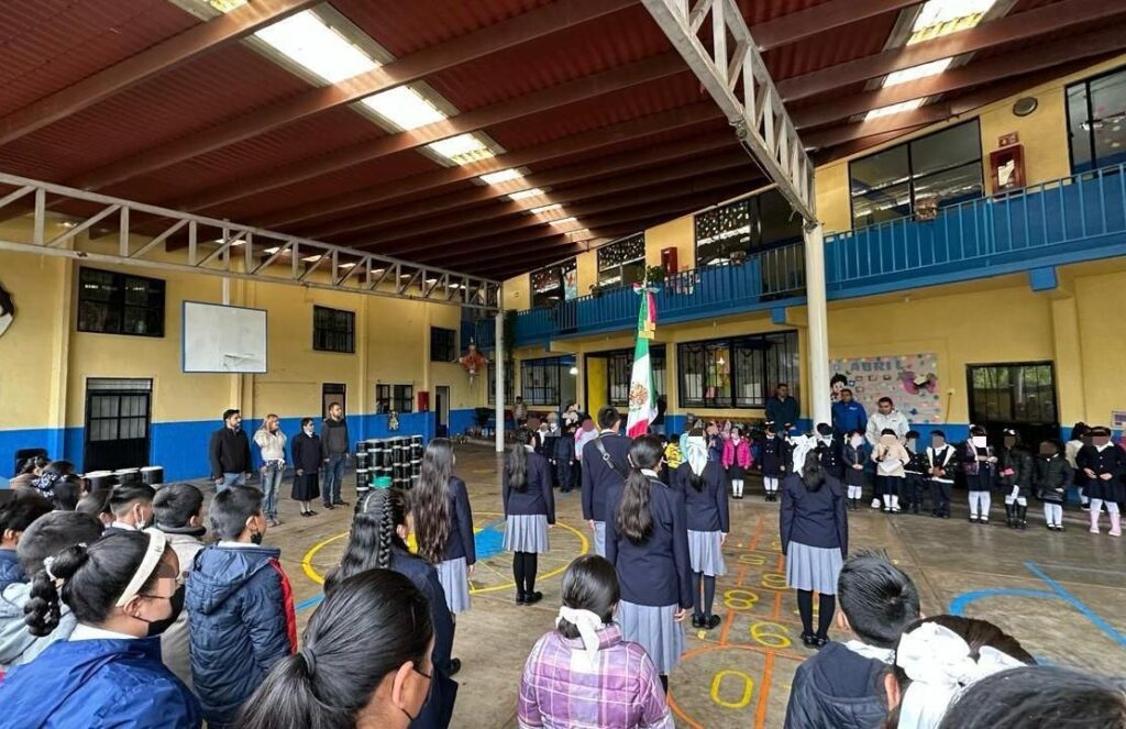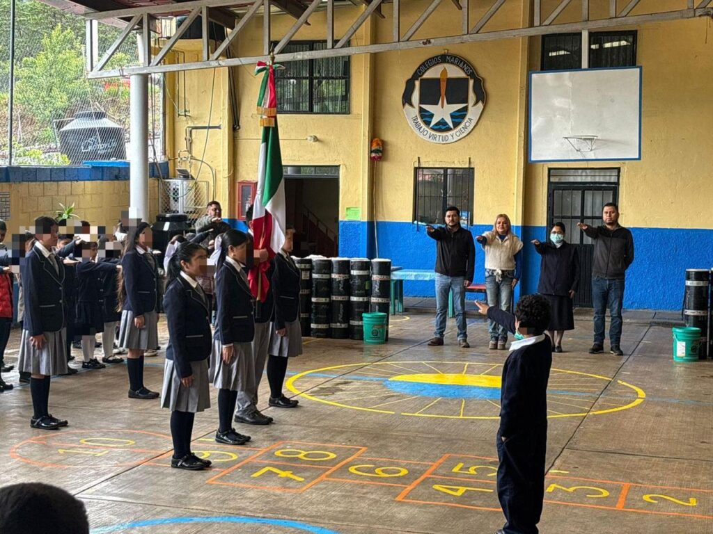 La presidenta municipal de Pinal de Amoles, Lupita Ramírez Plaza, encabezó los honores a la bandera en la escuela primaria «Fray Pedro de Gante» de la Cabecera municipal, donde además hizo entrega de un apoyo consistente en impermeabilizante para la rehabilitación del techo de dicho plantel.