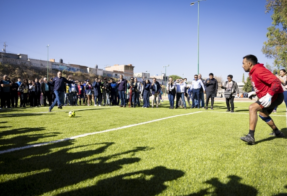 “Aprovechen muchísimo esta cancha, cuídenla, véanla de verdad como un símbolo de compañerismo, de hacer equipo, de hacer deporte, porque es lo que queremos, impulsar su desarrollo, impulsar su futuro, y estos proyectos, pues son el camino para hacerlo”, subrayó.