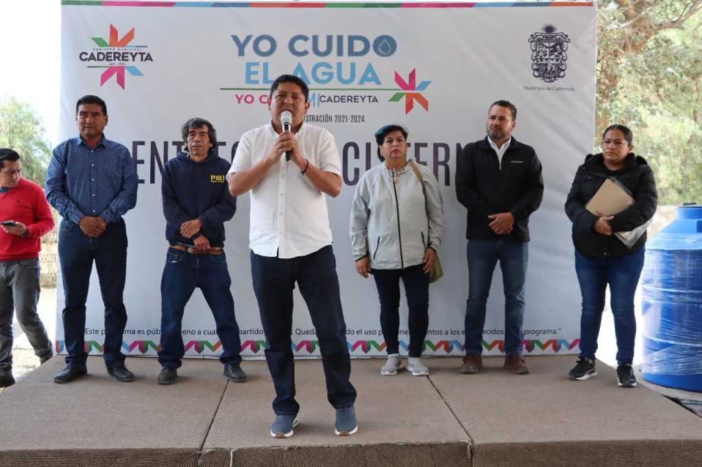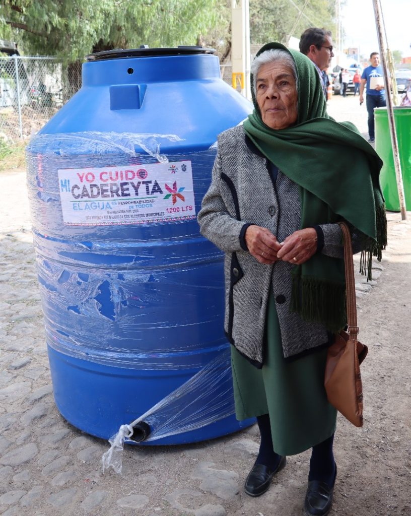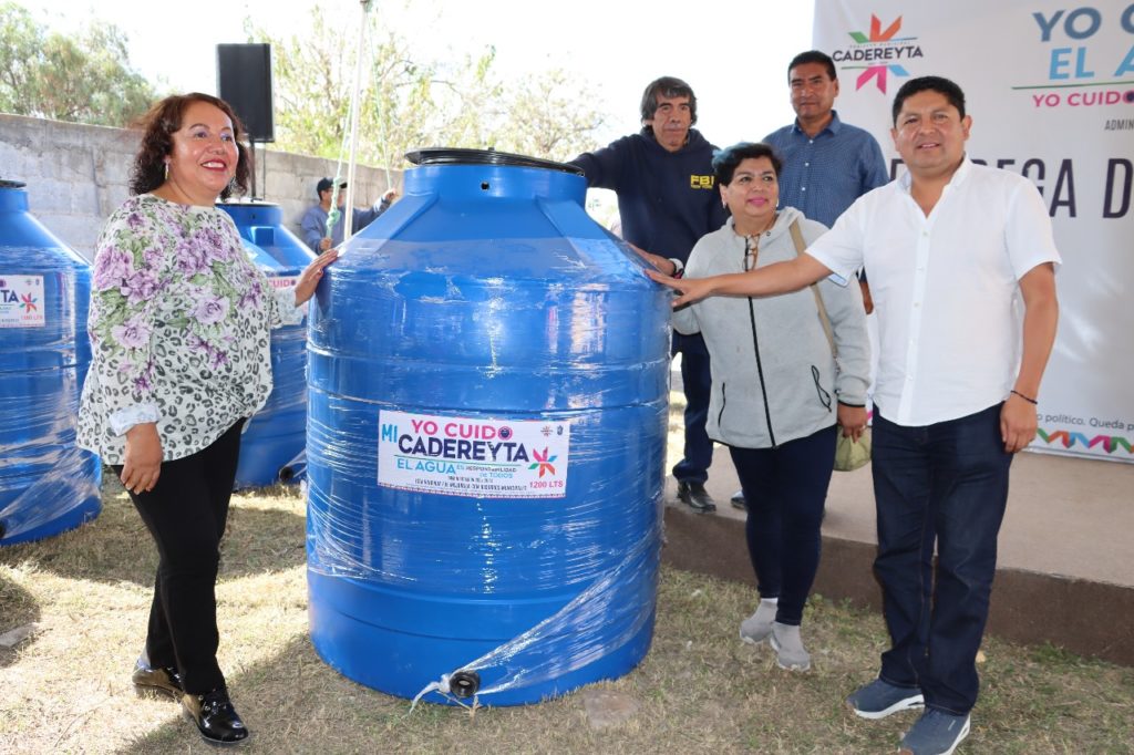 En este evento ciudadano, el alcalde informó que este programa ha beneficiado a los habitantes de diversas comunidades “empezamos en las comunidades localizadas en la zona alta de la cabecera municipal que es donde más falta hace el vital líquido, ya entregamos en Pueblo Nuevo, en Villa Nueva, en Boxasní, La Magdalena, Puerto de la Concepción, Puerto del Chiquihuite etcétera y también vamos a entregar en la zona centro de Cadereyta”.