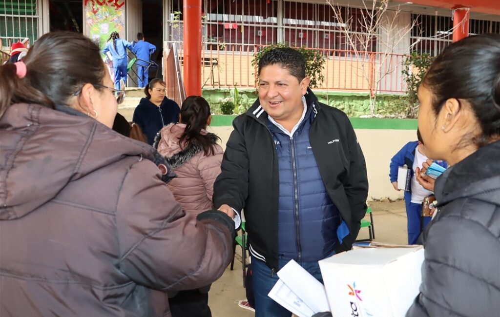 Este martes, el Presidente Municipal Miguel Martínez Peñaloza, encabezó una intensa gira de trabajo por la zona norte. Desde temprana hora visitó la delegación de El Doctor, ahí entregó más de 30 pares de calzado deportivo a los estudiantes del preescolar y primaria Emilio Carranza; posteriormente en la escuela primaria Miguel Hidalgo en Loma de Guadalupe, el edil entregó 12 pares de tenis y más tarde en la primaria Juan Escutia en El Llano 18 estudiantes recibieron este apoyo que forma parte del programa Yo Cuido Cadereyta.