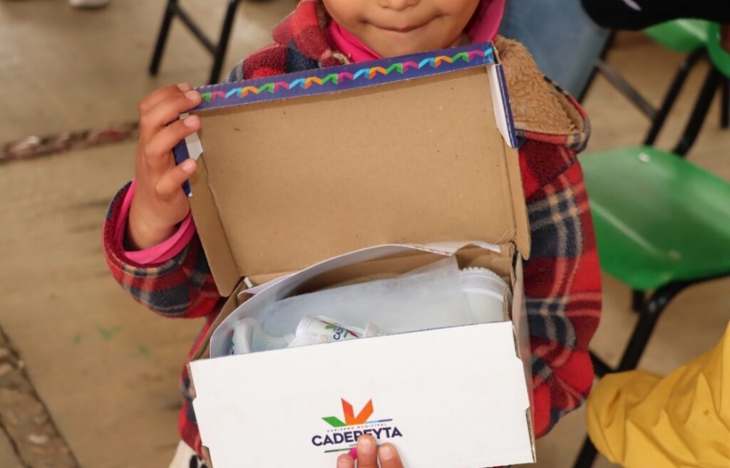 La administración municipal de Cadereyta de Montes que preside Miguel Martínez Peñaloza avanza con la estrategia de entrega de tenis a estudiantes de preescolares, escuelas primarias y secundarias.
