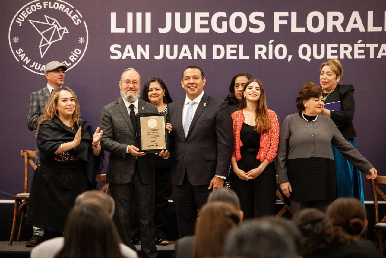 En los LIII Juegos Florales San Juan del Río, el Premio Nacional de Poesía San Juan del Río 2025 fue para Beatriz Pérez Pereda por su obra “El Ministerio de la Soledad”, quien recibió la Flor de Plata y un diploma de honor. En la categoría Elogio Nacional a San Juan del Río, el ganador fue Israel M. López, con el trabajo “No Podemos Salirnos del Lugar que nos Adopta. Versos desde la Ribera del Bajío”, que lo hizo acreedor a un diploma. El Premio Elogio Local a San Juan del Río, que también recibió un diploma, fue para Lorena María Guadalupe Reséndiz Mendoza, con la obra “Memorias del Camino Real”. Todos los galardonados recibieron un estímulo económico conforme a la convocatoria del certamen.