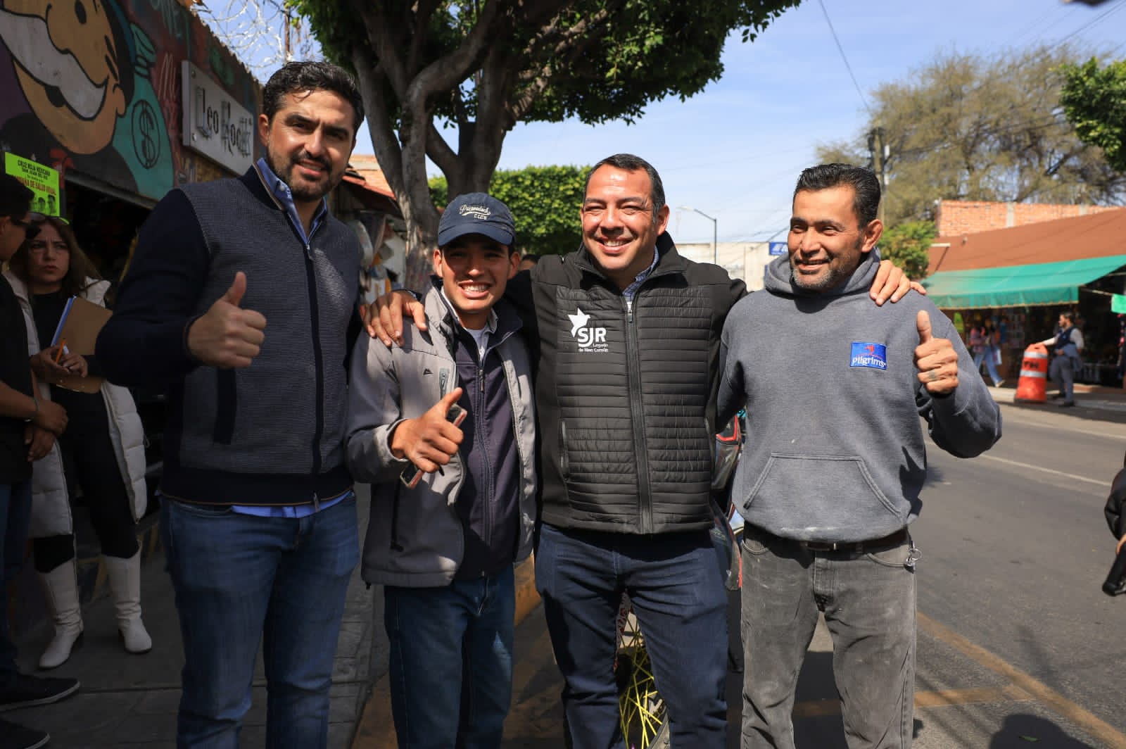 Asimismo, por medio de la Dirección de la Juventud, se realizó un mural, en el cual se representa la historia de esa zona del municipio de San Juan del Río, donde se plasmaron los personajes históricos del lugar, así como las siluetas de las personas que, día con día, protagonizan la vida diaria en la calle 5 de Mayo. Esta obra fue realizada por la artista “Lau” Barajas y su equipo de trabajo, quienes realizaron una investigación previa para definir los elementos a plasmar.