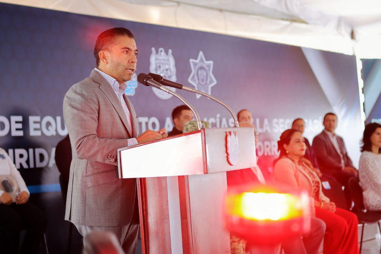 El presidente municipal de Corregidora, Roberto Sosa Pichardo, encabezó la entrega de equipamiento a policías de la Secretaría de Seguridad Pública del Municipio de Corregidora. Con una inversión superior a los 5 millones de pesos.