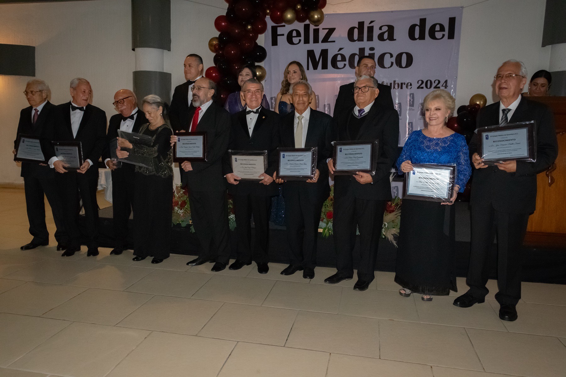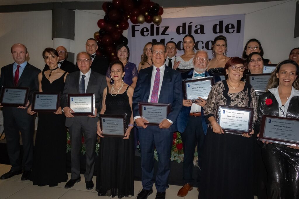 Pérez Rendón realizó un especial reconocimiento a las y los médicos que fueron homenajeados por sus años de servicio y enfatizó que su entrega y dedicación han sido fundamentales para fortalecer el sistema de salud del nuestro estado. Coordinó las actividades el presidente del Colegio Médico de Querétaro, Rodrigo Miguel González Sánchez