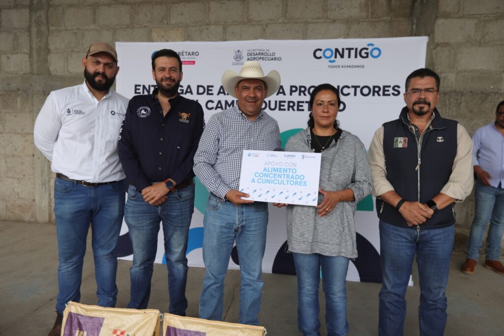 En reunión con los integrantes de la Asociación Ganadera Local Especializada de Cunicultores de Querétaro, el secretario de Desarrollo Agropecuario, Rosendo Anaya, entregó apoyo consistente en 400 kilos de alimento concentrado, a 16 productores dedicados a la crianza de conejo en Querétaro.