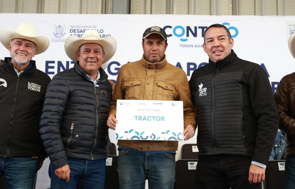 El secretario de Desarrollo Agropecuario, Rosendo Anaya, encabezó en San Juan del Río la entrega de apoyos con valor de 16 millones 700 mil pesos, conformada por aportaciones del Estado, municipio y productores, a fin de fortalecer el campo de la región con recursos para la adquisición de infraestructura, maquinaria, material, equipo y proyectos productivos agropecuarios, lo que contribuye a impulsar la reactivación económica del Sector Primario