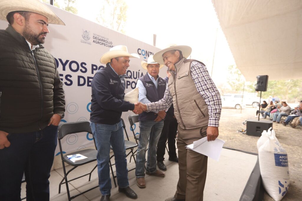 El secretario de Desarrollo Agropecuario, Rosendo Anaya, encabezó en Colón, la dispersión de 424 toneladas de maíz para consumo humano, por parte del Gobierno del Estado, como apoyo emergente a mil 136 productores de temporal que sufrieron afectación y vieron mermada su cosecha por el prolongado estiaje.