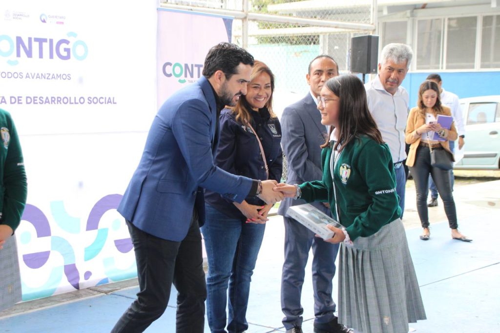 Como parte de las acciones para el fortalecimiento a la educación, el secretario de Desarrollo Social, Agustín Dorantes Lámbarri, encabezó la entrega de mil 716 tabletas a estudiantes de la Secundaria General Antonio Caso en San Juan del Río, esto con el objetivo de reforzar su rendimiento académico a través de herramientas tecnológicas que faciliten el acceso a la información necesaria para realizar sus trabajos y proyectos escolares.