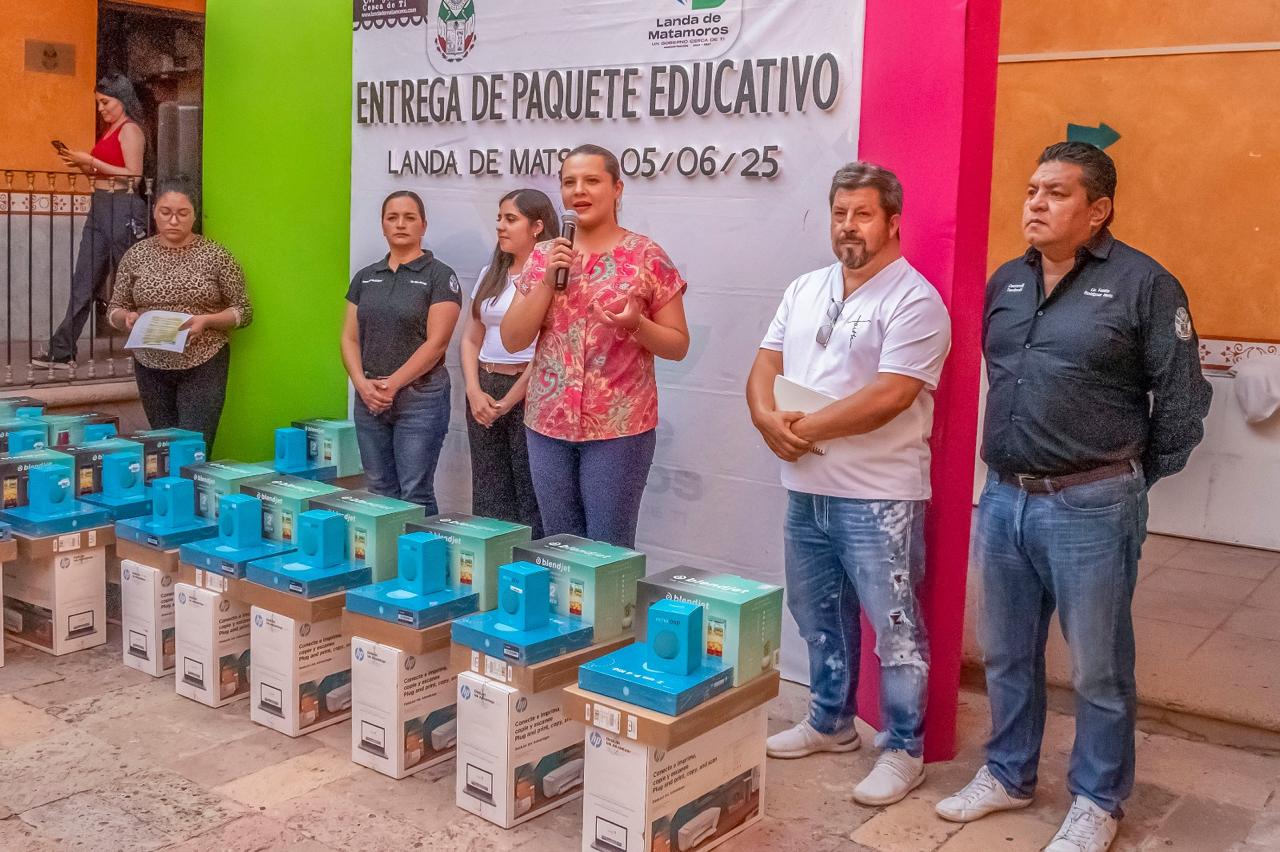 Cada paquete incluye una laptop, impresora multifuncional, tablet, dispositivo Alexa y una licuadora, herramientas que fortalecen el aprendizaje en casa y apoyan el bienestar de las familias.