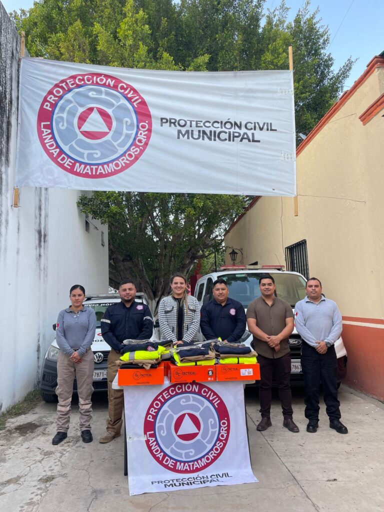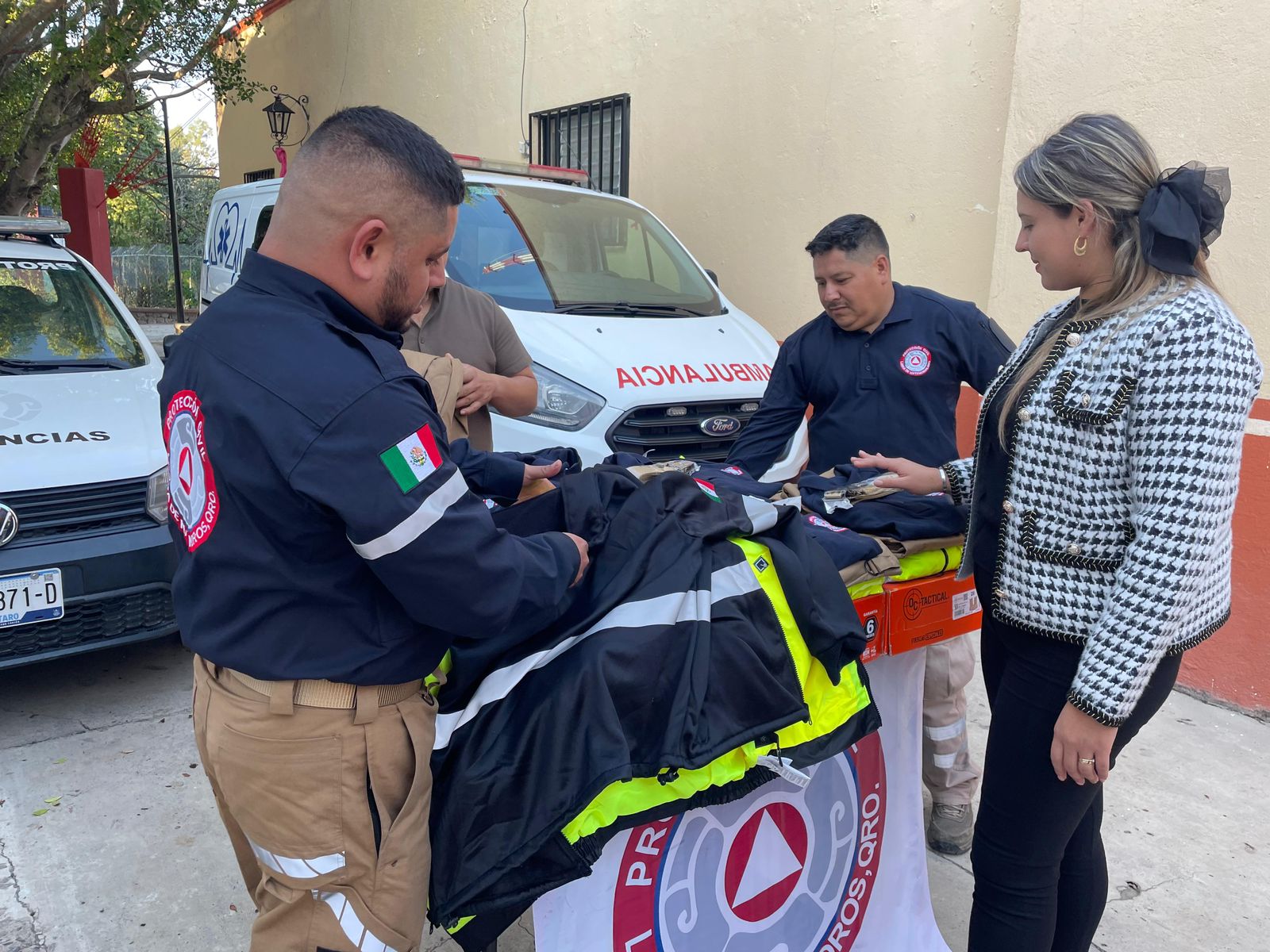 Landa de Matamoros, Qro. Enero de 2025.- La presidente municipal Yuni Benítez, realizó la entrega de uniformes a elementos de Protección Civil municipal.