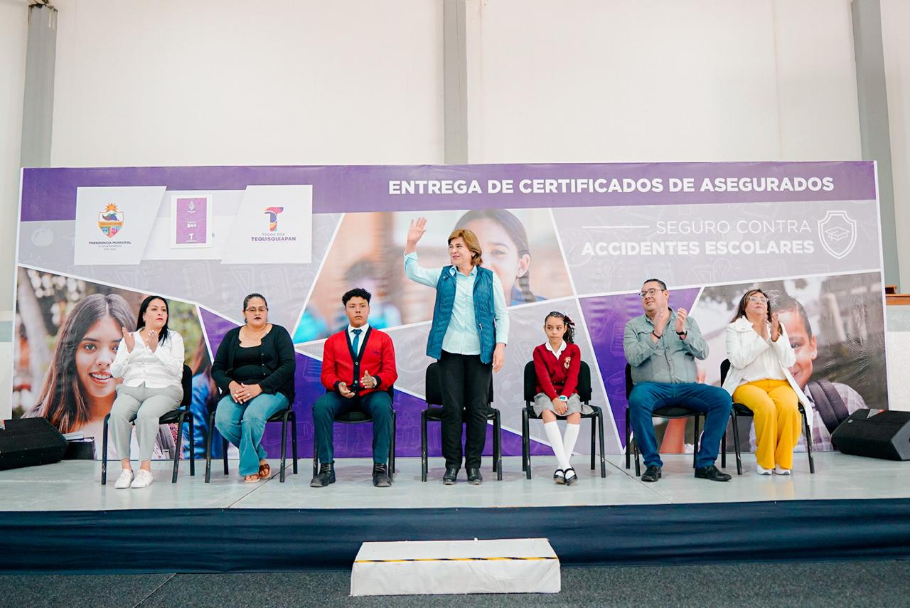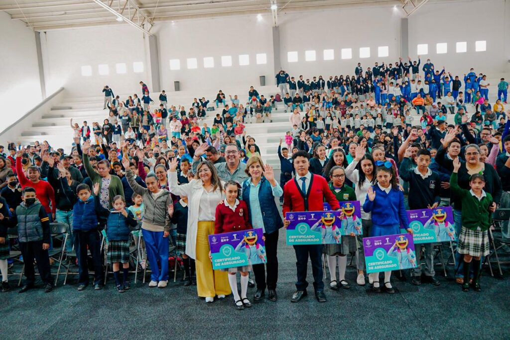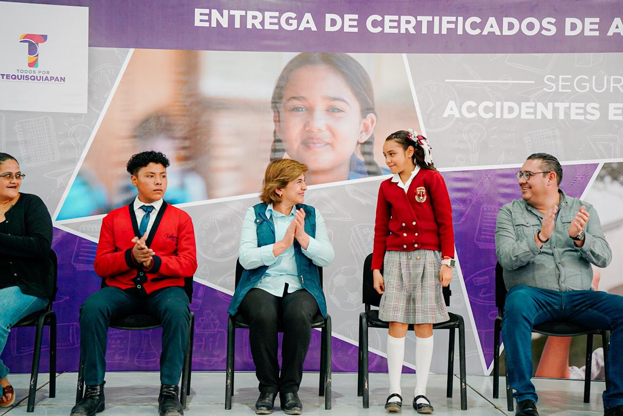 La presidenta del Sistema Municipal DIF, Norma Mejía Lira, en representación del Alcalde Toño Mejía, encabezó la entrega de 12 mil pólizas de seguros contra accidentes para niños y niñas de diferentes instituciones educativas del municipio de Tequisquiapan, cuya finalidad es brindar a los estudiantes de nivel básico atención médica de calidad y apoyar la economía familiar.