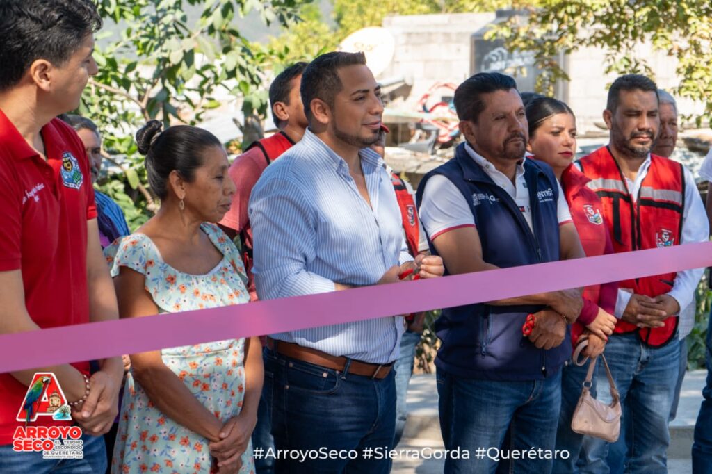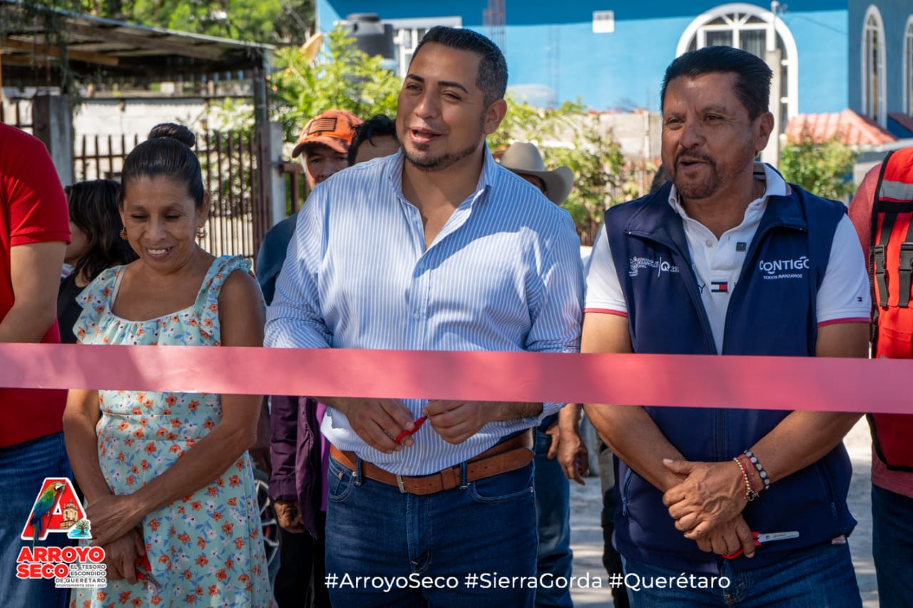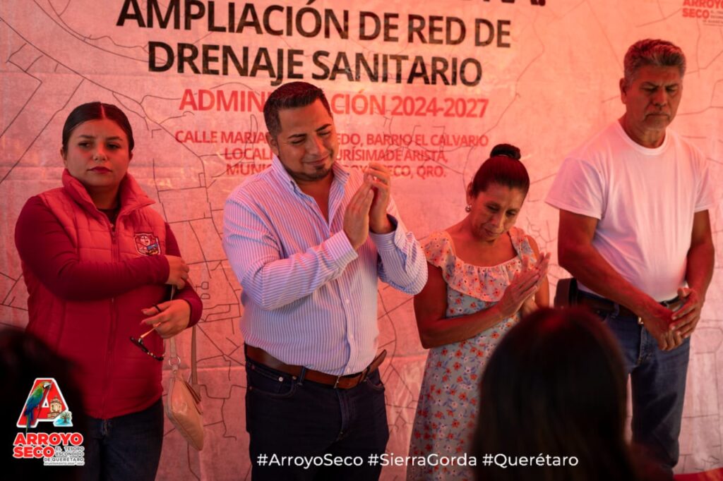 El Presidente Municipal de Arroyo Seco, Fernando Sánchez Gil, realizó la entrega formal de la ampliación de la red de drenaje sanitario en la calle Mariano Escobedo, en el Barrio El Calvario de Purísima de Arista, acompañado por la regidora Herminia González; los regidores Benigno Vega y Juan Ángel Benítez; Luis Alberto Huerta, Director de Desarrollo Urbano y Obras Públicas; Antonio Acuña, representante del Comisariado Ejidal; Mario Pérez, Coordinador de la SEDESOQ; Francisca Andablo, Presidenta del Comité de Obra; y el Síndico Juan Ángel Marín.