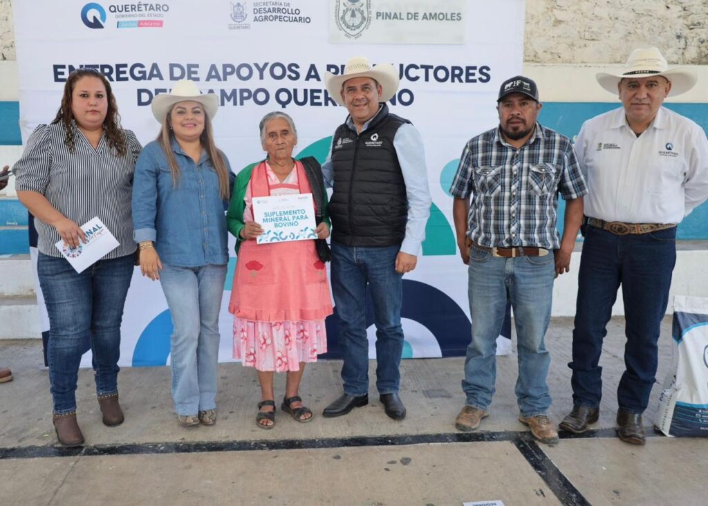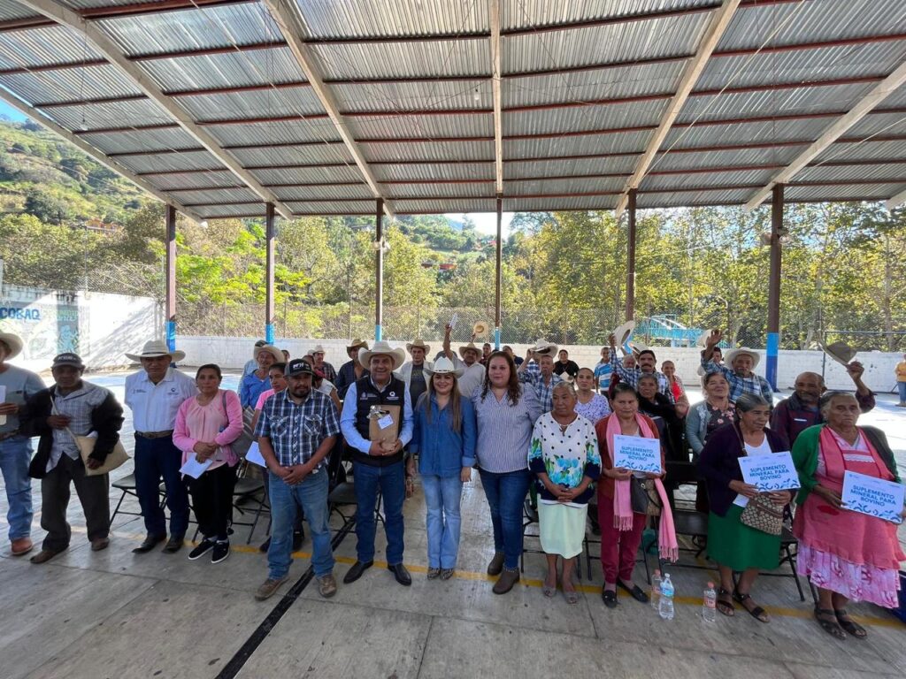 La Presidenta Municipal de Pinal de Amoles, Lupita Ramírez Plaza, acompaño al Secretario de Desarrollo Agropecuario del Estado, Rosendo Anaya Aguilar a la entrega de apoyos agropecuarios en la delegación de Escanelilla.