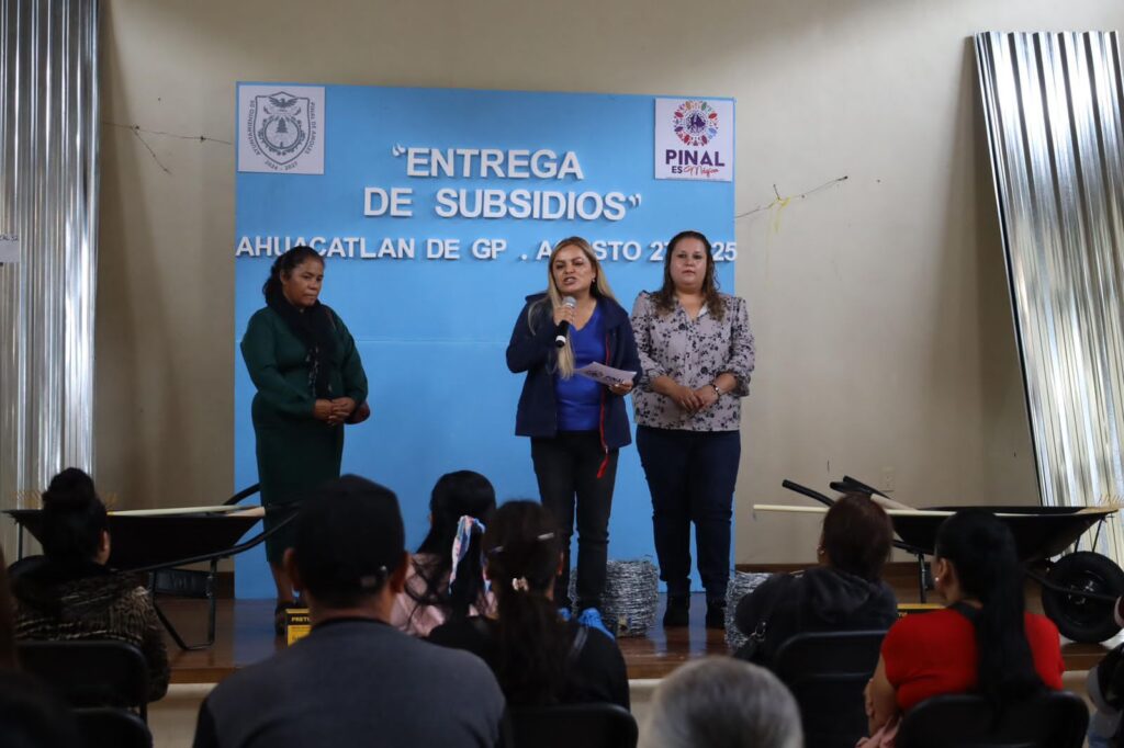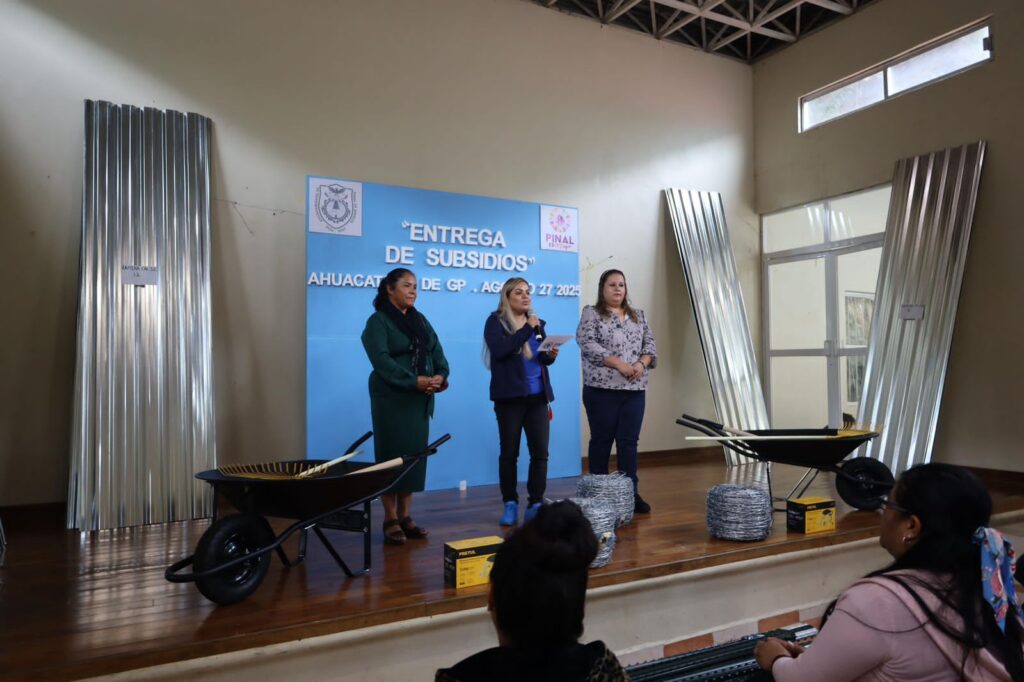 La presidenta municipal de Pinal de Amoles, Lupita Ramírez Plaza, encabezó la entrega de apoyos subsidiados en coordinación con el Departamento de Desarrollo Rural y Sustentable, con el objetivo de fortalecer a agricultores y ganaderos de la zona baja del municipio.