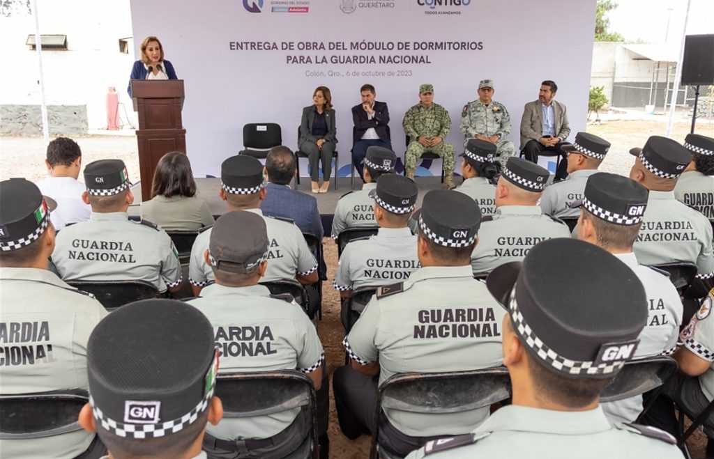 La secretaria de Gobierno, Guadalupe Murguía Gutiérrez, en representación del gobernador Mauricio Kuri, encabezó la entrega de obras de módulo de dormitorios, área de baños, vestidores y depósito de armamento para la Guardia Nacional en el Aeropuerto Intercontinental de Querétaro (AIQ), espacios con los que se brindan instalaciones dignas y adecuadas para que las y los elementos de la institución de seguridad federal realicen su labor.