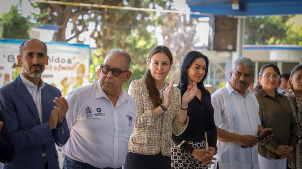 La secretaria de Turismo estatal, Adriana Vega Vázquez Mellado, junto al titular del Instituto de Infraestructura Educativa del estado de Querétaro (IFEQ), Fernando Orozco Vega; entregaron obras por más de 3.4 millones de pesos en equipamiento, espacios deportivos aulas y computadoras en beneficio de la Secundaria General «Cerro de las Campanas» ubicada en el municipio de Tequisquiapan.