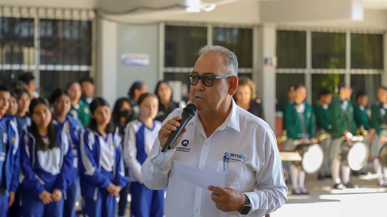El titular de la IFEQ, Fernando Orozco, explicó que se entregó a esta secundaria y una nueva cancha de futbol 7, un aula de artes y se mejoró el espacio del huerto escolar, cuya inversión asciende a los 3.4 millones de pesos, beneficiando a una comunidad educativa de mil 473 alumnos.