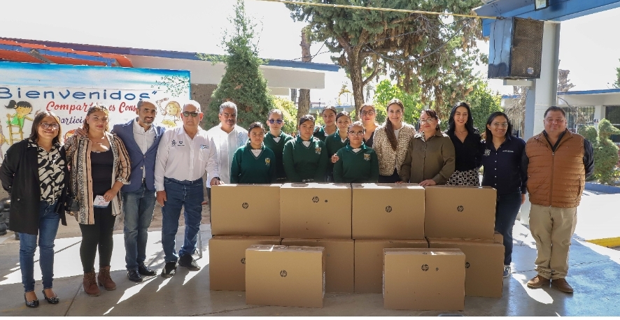 Adicionalmente, se hizo entrega de 58 computadoras para alumnos y personal administrativo de la escuela, cuya inversión realizada por la USEBEQ, asciende a los 800 mil pesos.