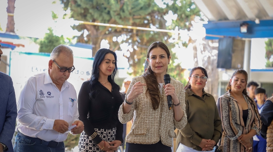 La secretaria de Turismo estatal, Adriana Vega Vázquez Mellado, junto al titular del Instituto de Infraestructura Educativa del estado de Querétaro (IFEQ), Fernando Orozco Vega; entregaron obras por más de 3.4 millones de pesos en equipamiento, espacios deportivos aulas y computadoras en beneficio de la Secundaria General «Cerro de las Campanas» ubicada en el municipio de Tequisquiapan.