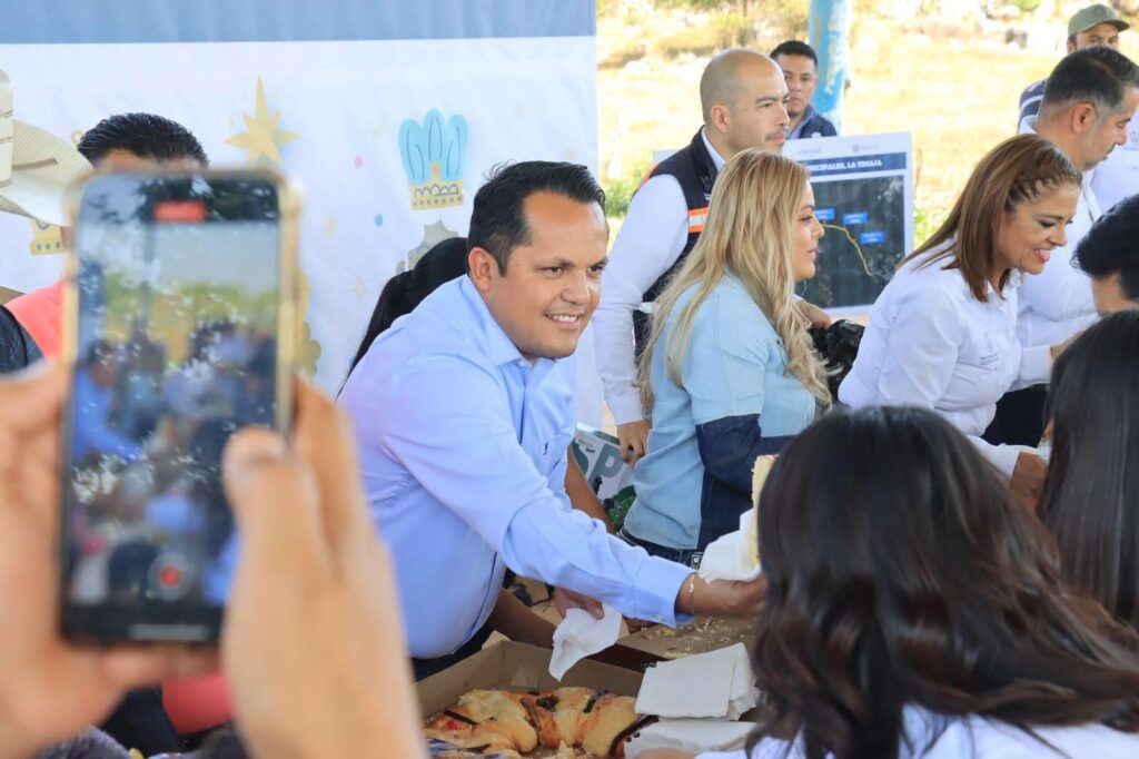 En un ambiente de cercanía y convivencia, las autoridades compartieron con la comunidad la tradicional Rosca de Reyes y realizaron la entrega de juguetes a niñas y niños, además de entregar a los adultos mayores una cobija dentro del programa “Abrigos de Corazón” del SMDIF.