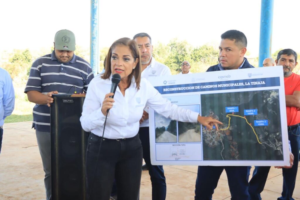 La presidenta municipal de Pinal de Amoles, Lupita Ramírez Plaza, encabezó una visita de trabajo en la comunidad de La Tinaja, acompañada por la Ing. Sonia Carrillo, coordinadora de la Comisión Estatal de Infraestructura del Estado de Querétaro en representación del gobernador Mauricio Kuri e Iván Zárate, presidente del DIF Municipal.