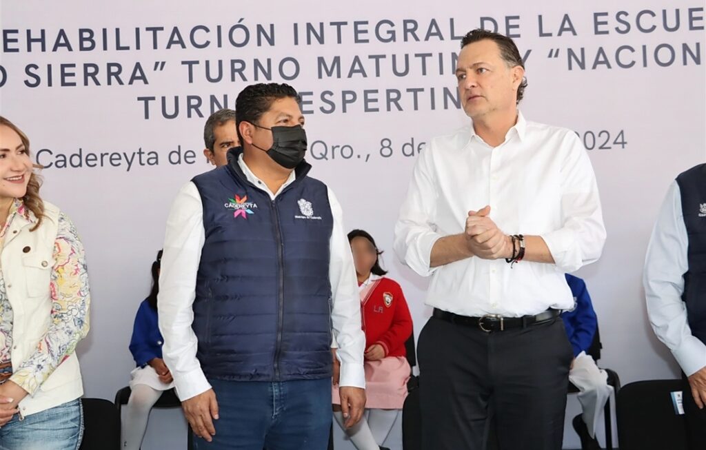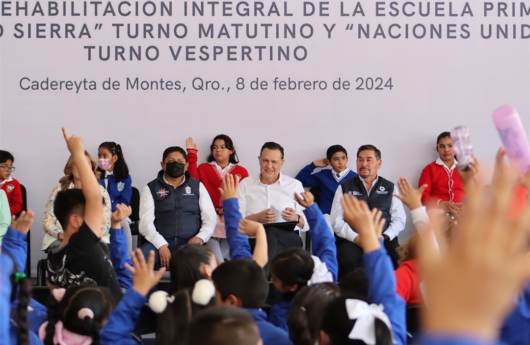 El Presidente Municipal de Cadereyta, Miguel Martínez Peñaloza y el Gobernador del Estado Mauricio Kuri González encabezaron la entrega de la rehabilitación Integral de las escuelas primarias generales Justo Sierra turno matutino y Naciones Unidas en turno vespertino, que con una inversión de 4.8 millones de pesos beneficiarán a 696 alumnas y alumnos.