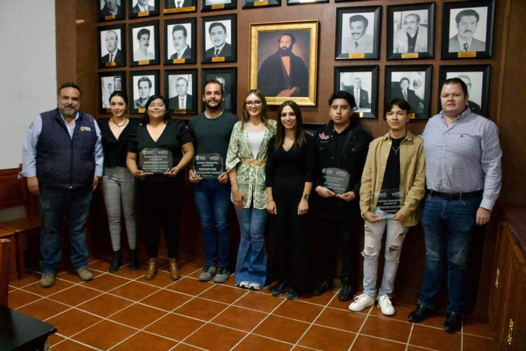 Alex Martínez Orozco, ganador en la categoría deportiva; Juan Pablo Bocanegra Ramírez, ganador en la categoría artística; Ana Brenda Rosario Caracheo, ganadora en la categoría de emprendimiento; Jonathan Eduardo Larios Hernández, ganador en la categoría académico y Keila Lizbeth Rojas Hernández , ganadora en la categoría de emprendimiento.