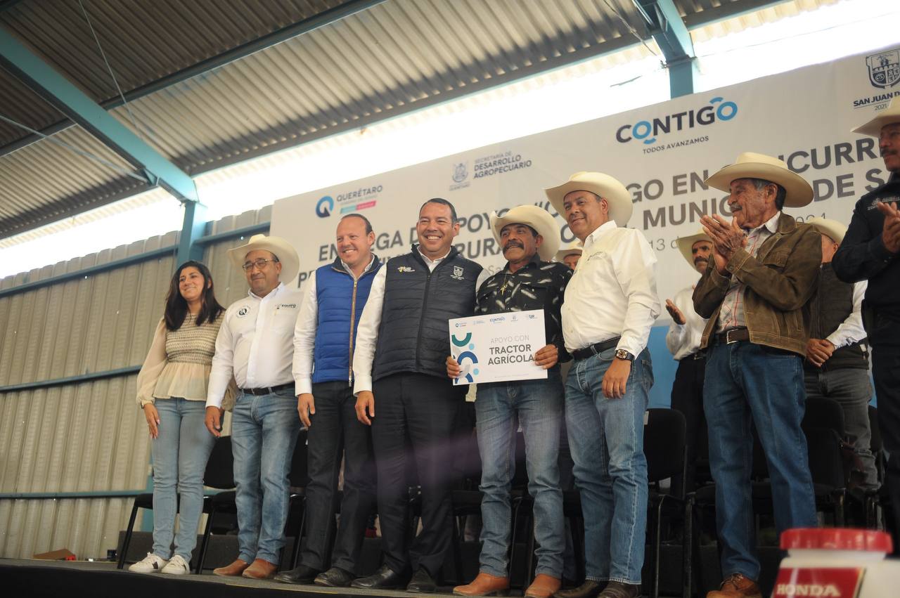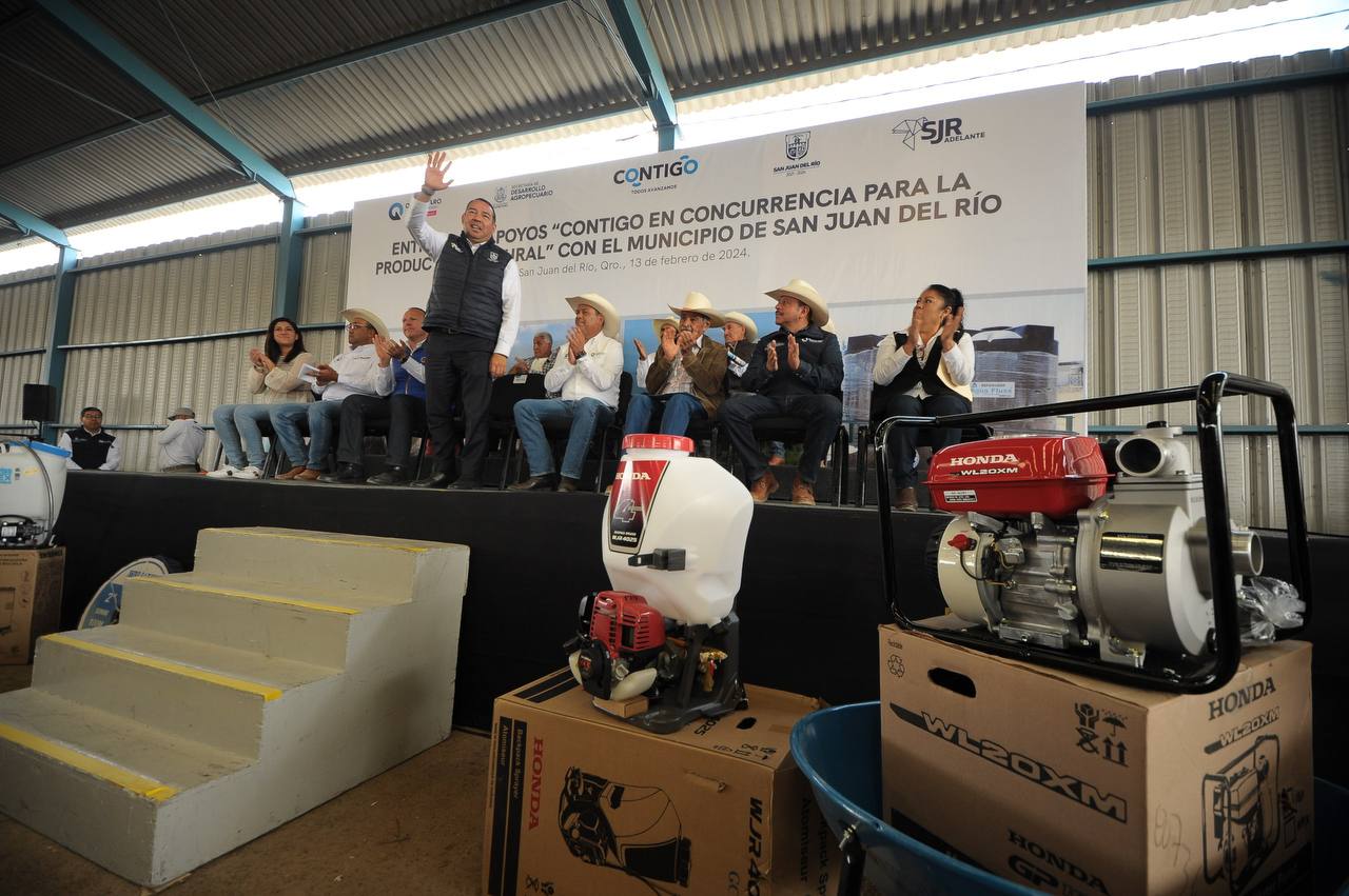 En beneficio de 305 productores agrícolas, ganaderos, así como del sector acuícola y pesquero del municipio de San Juan del Río, el alcalde sanjuanense, Roberto Cabrera Valencia, y el titular de la Secretaría de Desarrollo Agropecuario (SEDEA), Rosendo Anaya Aguilar, hicieron entrega de apoyos en concurrencia con el municipio, que contempló una inversión de 21 millones de pesos.