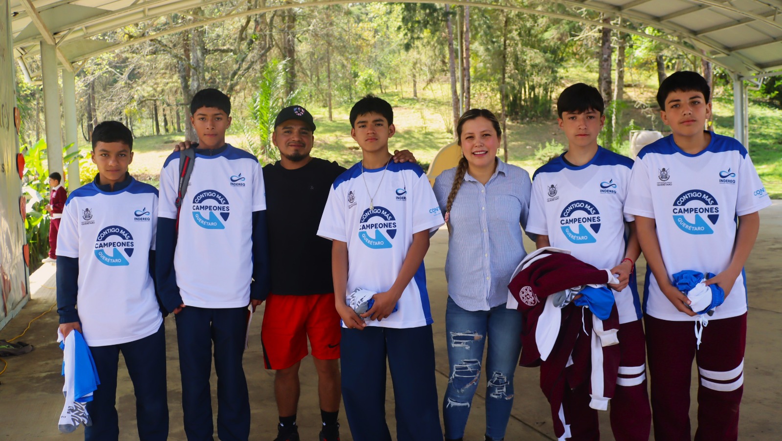 El equipo de fútbol varonil, destinado a participar como invitado en el 2do Torneo de Secundarias en el municipio de Arroyo Seco, se destacó como el foco de atención. Con la aspiración de conseguir el bicampeonato en la competencia, los jóvenes deportistas recibieron los uniformes con entusiasmo y determinación.