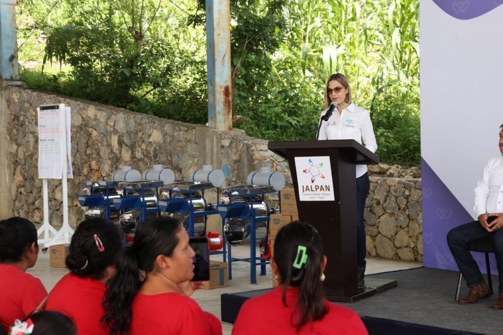 “Aquí las mujeres se organizan para mejorar no sólo la economía de sus familias, sino para apoyar a toda su comunidad, desde el 2022 están trabajando en este proyecto, y cuando nos unimos podemos hacer grandes cosas. Muchas felicidades por estar tan unidas, y hoy recibirán molinos para nixtamal que son pieza clave para la elaboración de masa para tortillas y tamales, espero les sirva, cuídenlos y aprovéchenlos mucho”, señaló.