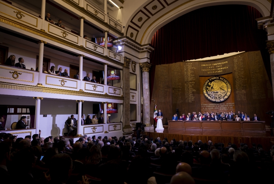 “Hoy, reunidos en este recinto en donde fue expedida la Constitución; en esta ciudad donde triunfó la República, los poderes públicos del Estado Mexicano enfrentamos el imperativo de hacer realidad la letra de la ley. No basta celebrar a la Constitución: hay que hacer realidad su mandato”, puntualizó.