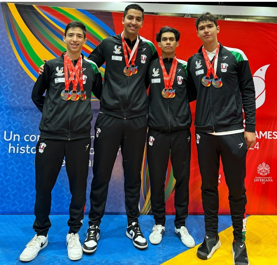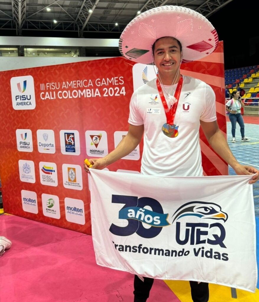 Salvador Gutiérrez Macedo, estudiante de la Maestría en Dirección Logística en la Cadena de Suministro Global de la Universidad Tecnológica de Querétaro (UTEQ), destacó en los FISU AMERICA Games 2024 celebrados en Cali, Colombia, al obtener la medalla de bronce en la modalidad individual de Taekwondo, así como la medalla de plata en la competencia por equipos, junto a sus compañeros Julio González, de la Universidad Anáhuac Querétaro, y Alonso Pineda Espinoza, de la Universidad Michoacana de San Nicolás Hidalgo (UMSNH).