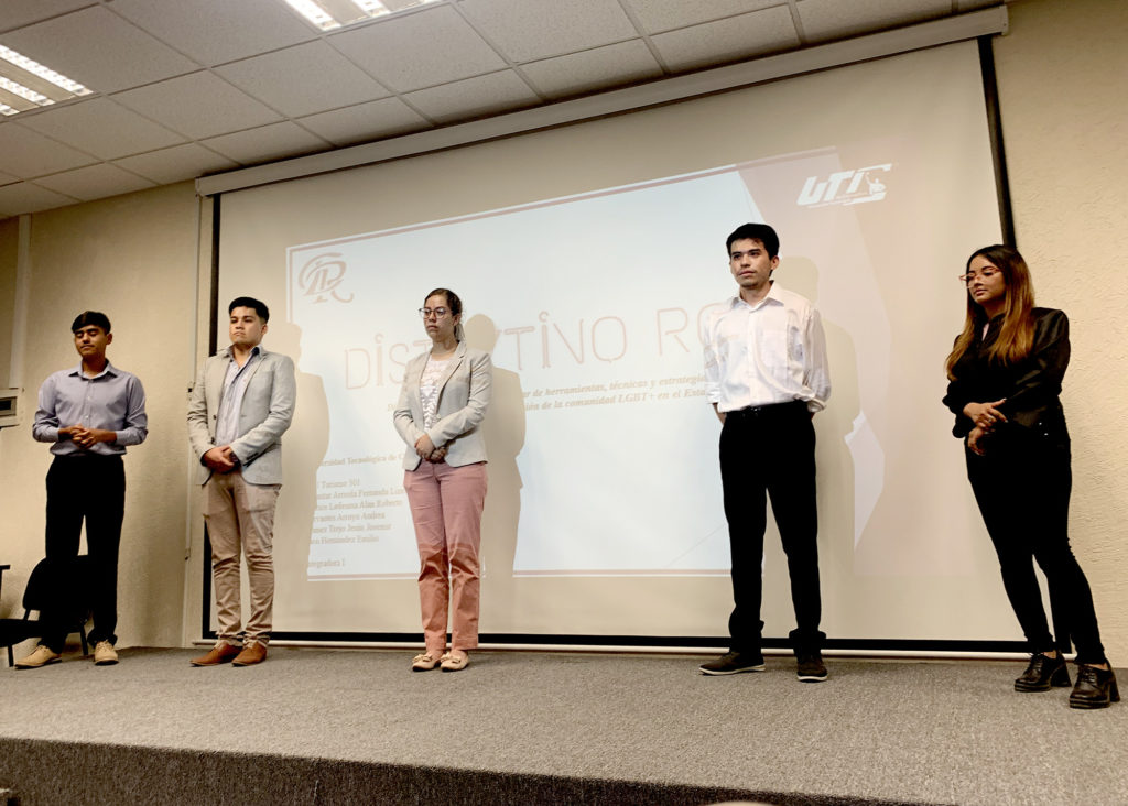 Como parte del desarrollo de proyectos de innovación para la promoción turística del estado, estudiantes de Turismo de la Universidad Tecnológica de Corregidora (UTC), presentaron la propuesta “Distintivo Rosa”, mediante la elaboración de una serie de certificaciones que permitan dotar de herramientas y estrategias a prestadores de servicios en la materia para la atención de la comunidad LGBT+ en el estado de Querétaro.