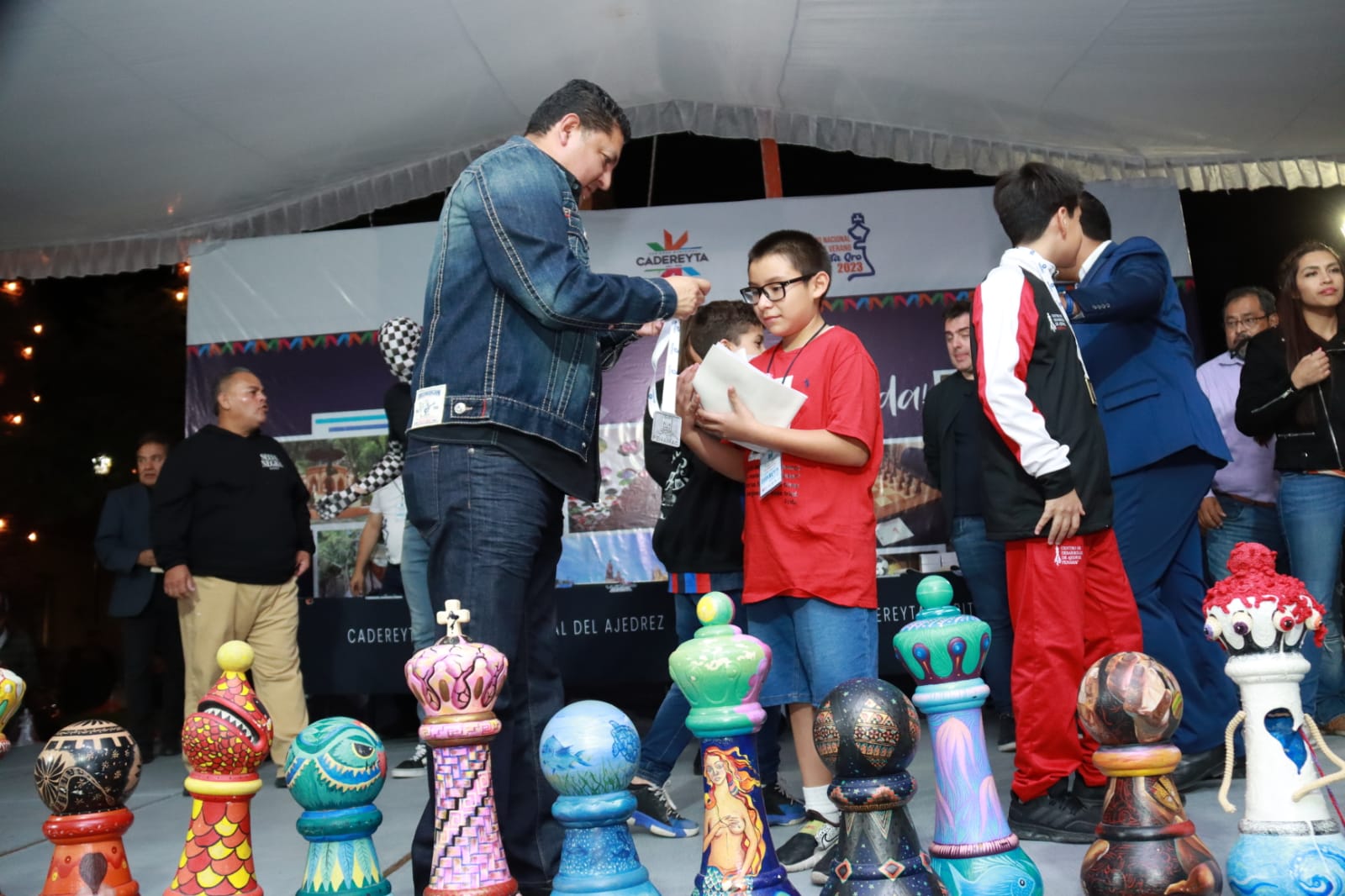 En el marco de la ceremonia de clausura del II Abierto Nacional de Ajedrez de Verano en Cadereyta 2023 en el que participaron 588 atletas procedentes de todos los estados del país, la mayoría acompañados por familiares y amigos equivalente a más de 2 mil personas que durante el fin de semana visitaron Cadereyta de Montes.