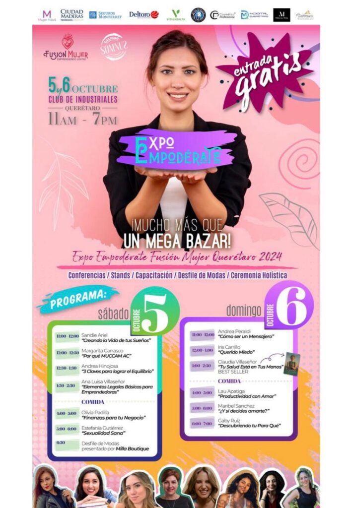 - Este 5 y 6 de octubre, Querétaro será sede de un evento que promete transformar la vida de cientos de mujeres: la Expo Empodérate Fusión Mujer Querétaro 2024. De 11:00 a 19:00 horas, el Club de Industriales recibirá a mujeres de todas las edades que deseen descubrir herramientas clave para su crecimiento personal y profesional.