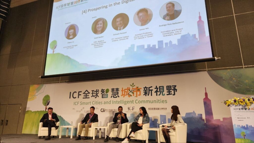 También formaron parte de aste foro: Tiffany Lin, Subidirectora de ICF Taiwán; Joani Gerber CEO de Stratford Economic Enterprise Development Corporation; Avinash Persaud, Vicepresidente de Hardware Catalyst Iniiative Venture LAB; y James Yeh, Profesor Asistente del Instituto ICF de la Universidad de Chung Hua Taiwán.