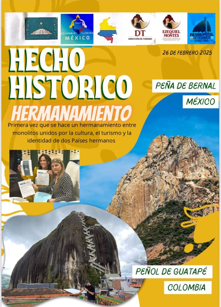 En el marco de la Vitrina Turística ANATO 2025, celebrada en Bogotá, Colombia, se concretó el primer hermanamiento entre peñones en el mundo, uniendo a la Peña de Bernal, en Ezequiel Montes, Querétaro, México, con el Peñón de Guatapé, en Antioquia, Colombia.