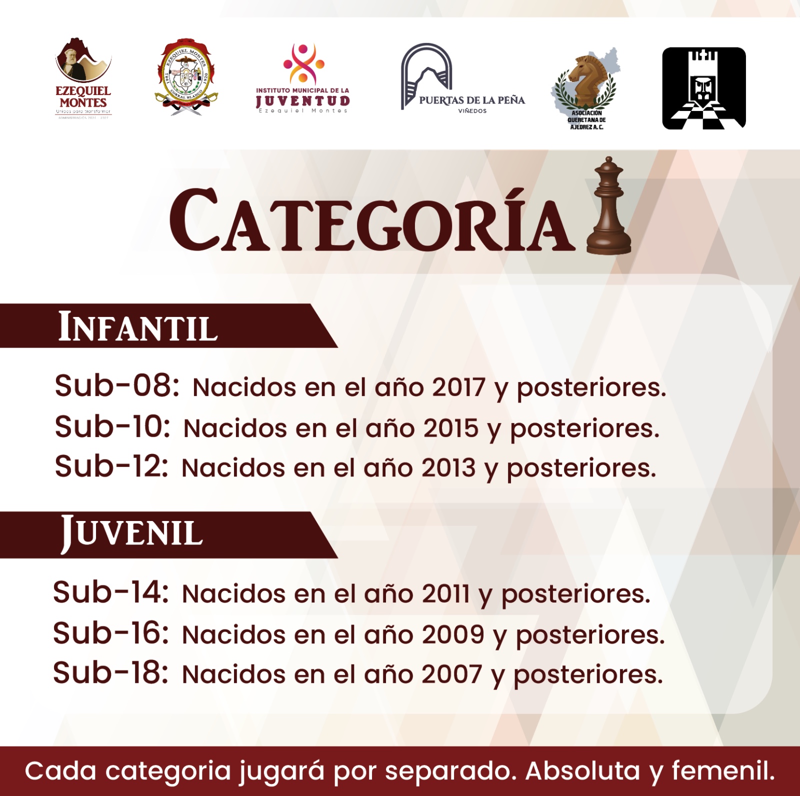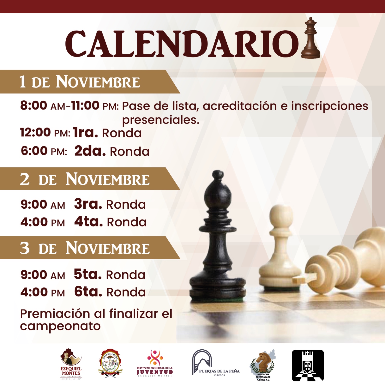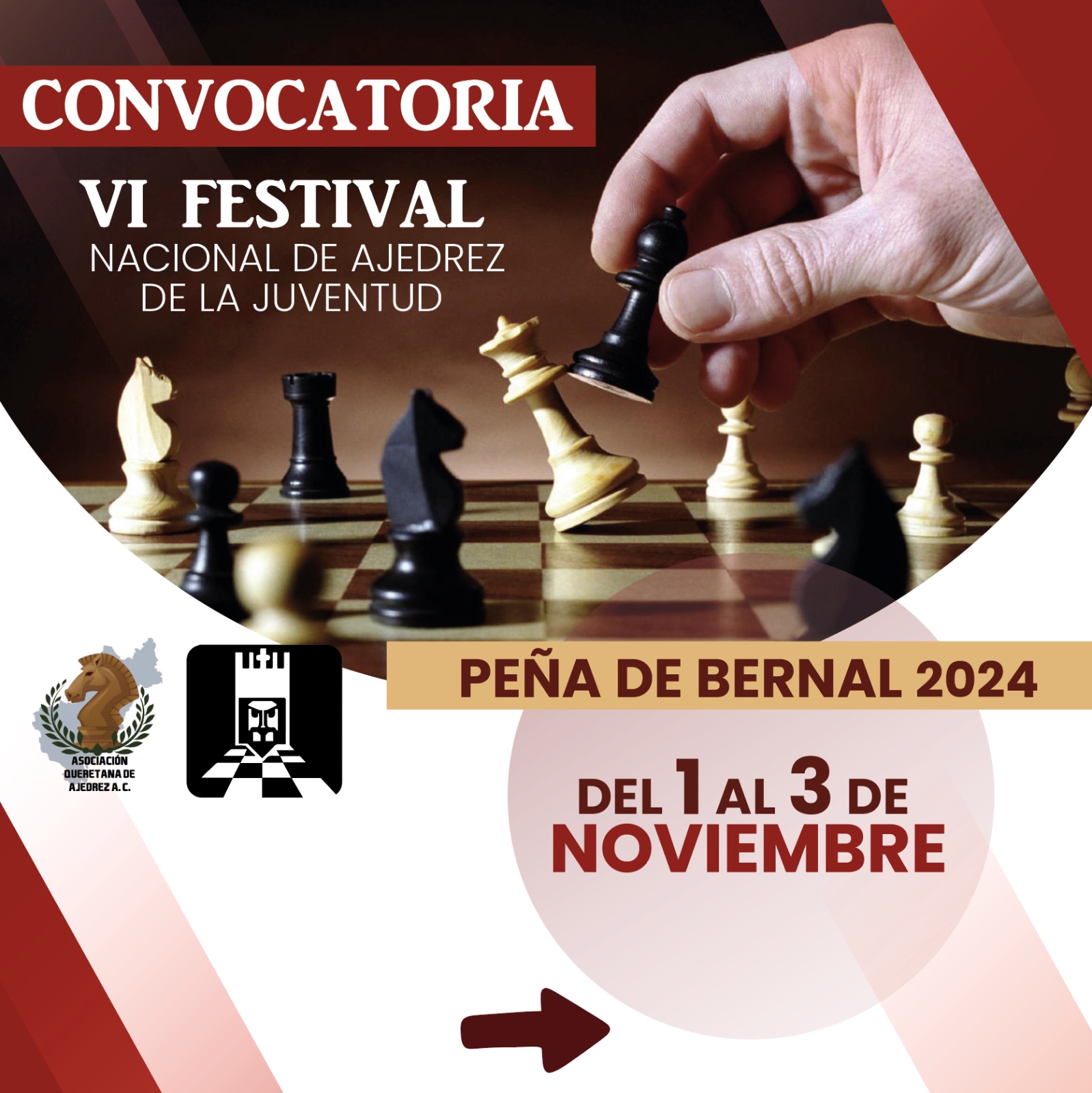 El Municipio de Ezequiel Montes , en colaboración con la Federación Nacional de Ajedrez de México AC (FENAMAC) y la Asociación Queretana de Ajedrez AC , se enorgullece en anunciar que seremos sede del VI Festival Nacional de Ajedrez de la Juventud Peña de Bernal 2024 , un evento de gran importancia en el ámbito ajedrecístico nacional.