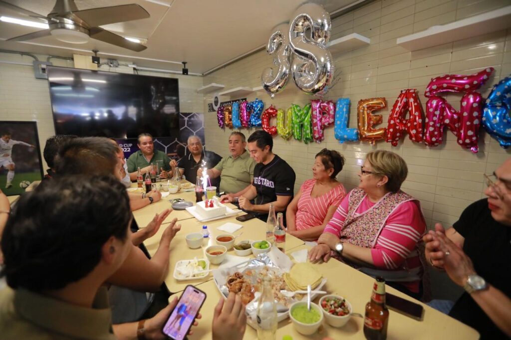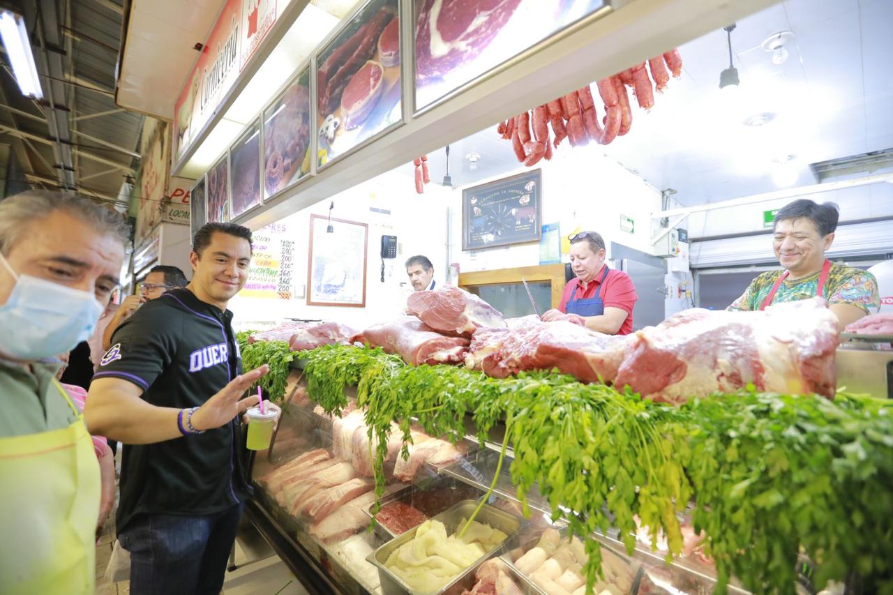 Durante el recorrido acompañó al secretario general del Mercado Escobedo, Daniel Uribe Zárate y al secretario de Interior, Jesús Soto. Felifer Macías, destacó la importancia de apoyar mercados ya que son un pilar fundamental de la sociedad.