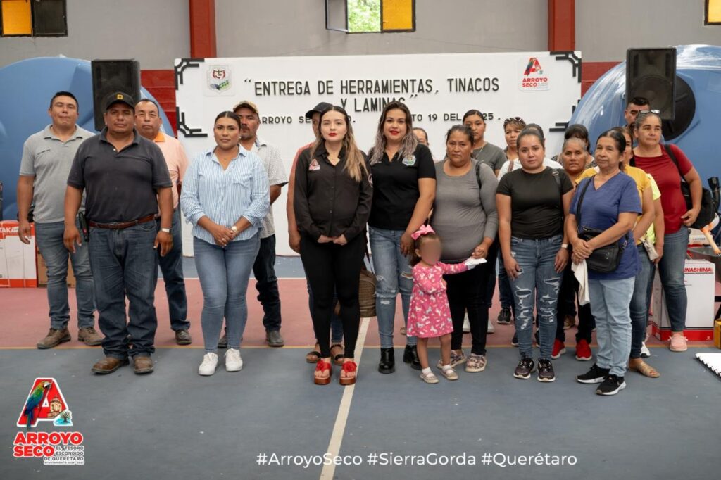 Teniendo como sede el auditorio de la localidad de Arroyo Seco, se realizó la entrega de kits de herramientas, tinacos y láminas, apoyos promovidos por la Dirección de Desarrollo Agropecuario.