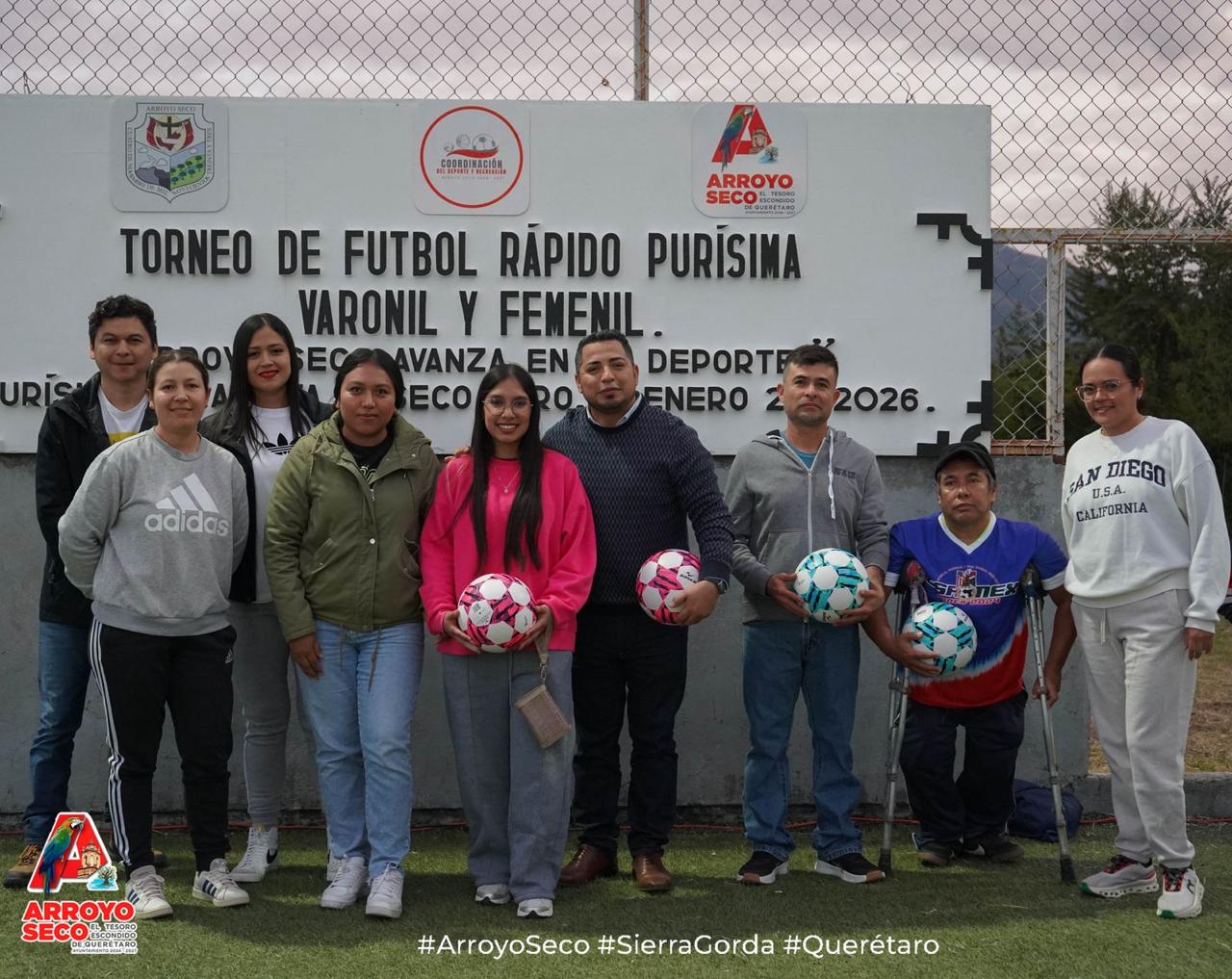 Arroyo Seco, Querétaro.– Con el objetivo de impulsar el deporte y fortalecer la convivencia comunitaria, se llevó a cabo el arranque oficial de la Liga de Fútbol Rápido en la unidad deportiva de la delegación de Purísima de Arista, con la participación de 15 equipos en las categorías varonil y femenil.
