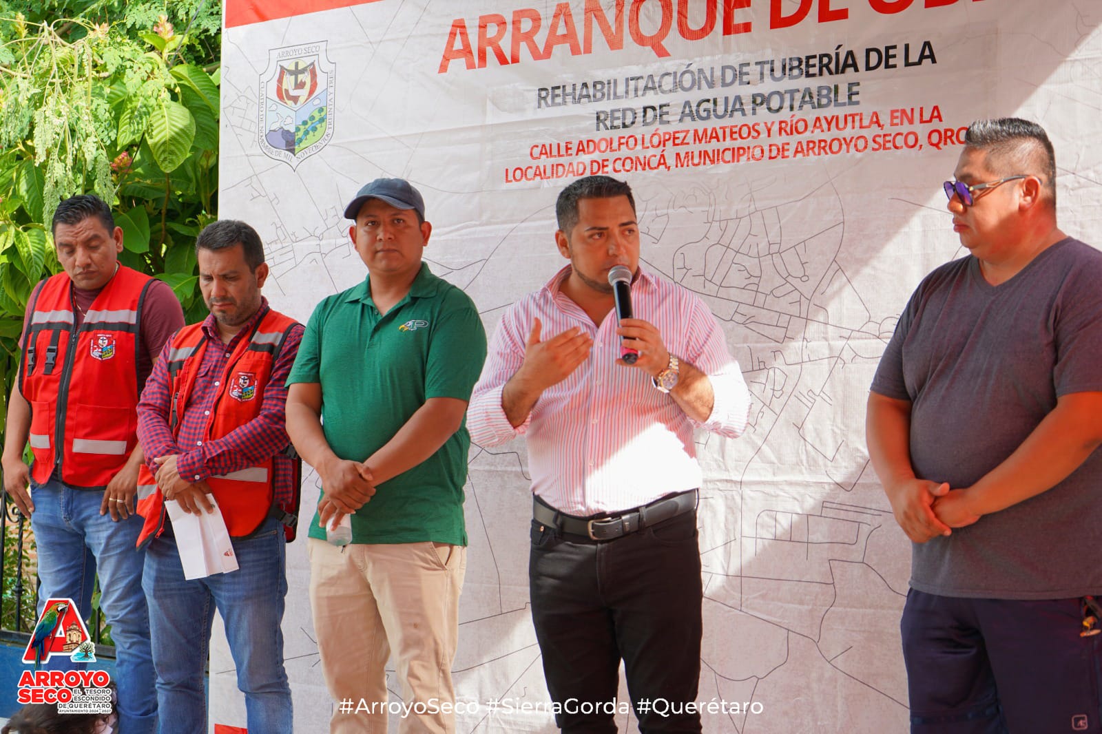 El Presidente Municipal de Arroyo Seco, Fernando Sánchez Gil, dio arranque a la rehabilitación de la tubería de la red de distribución de agua potable en la calle Adolfo López Mateos y Río Ayutla, en la localidad de Concá.