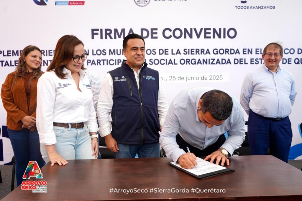 Con el objetivo de seguir fortaleciendo los lazos interinstitucionales, el Presidente Municipal de Arroyo Seco, Fernando Sánchez Gil, realizó la firma del Convenio de Complementariedad con los municipios de la Sierra Gorda, en el marco del Programa de Fortalecimiento de la Participación Social Organizada del Estado de Querétaro.