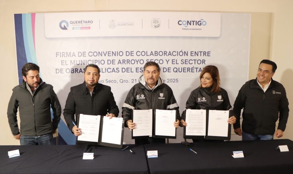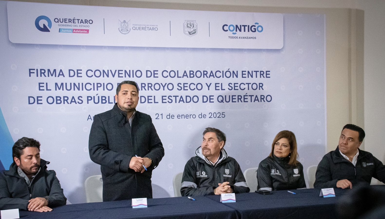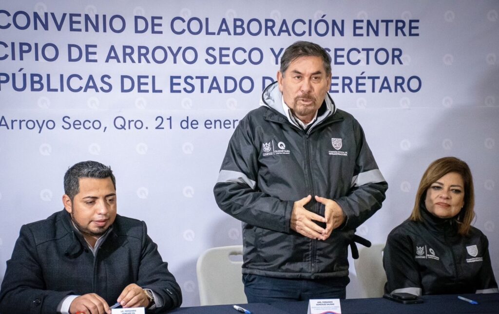 Firma el Presidente Municipal de Arroyo Seco, Lic. Fernando Sánchez Gil 3 convenios de colaboración entre el Gobierno Municipal y el sector de obras públicas del estado.