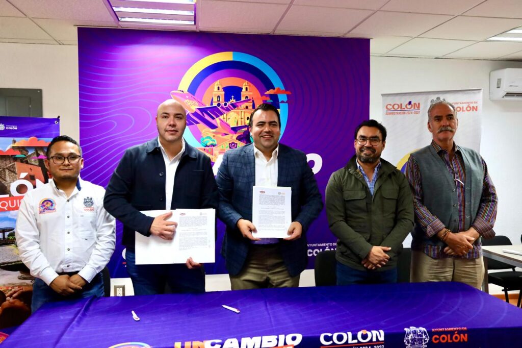 El Alcalde Gaspar Trueba Moncada y el Presidente de la Cámara Mexicana de la Industria de la Construcción de Querétaro (CMIC), Álvaro Ugalde Chaparro, firmaron un convenio de colaboración que busca generar un impacto positivo en la comunidad y promover el desarrollo del Municipio de Colón.