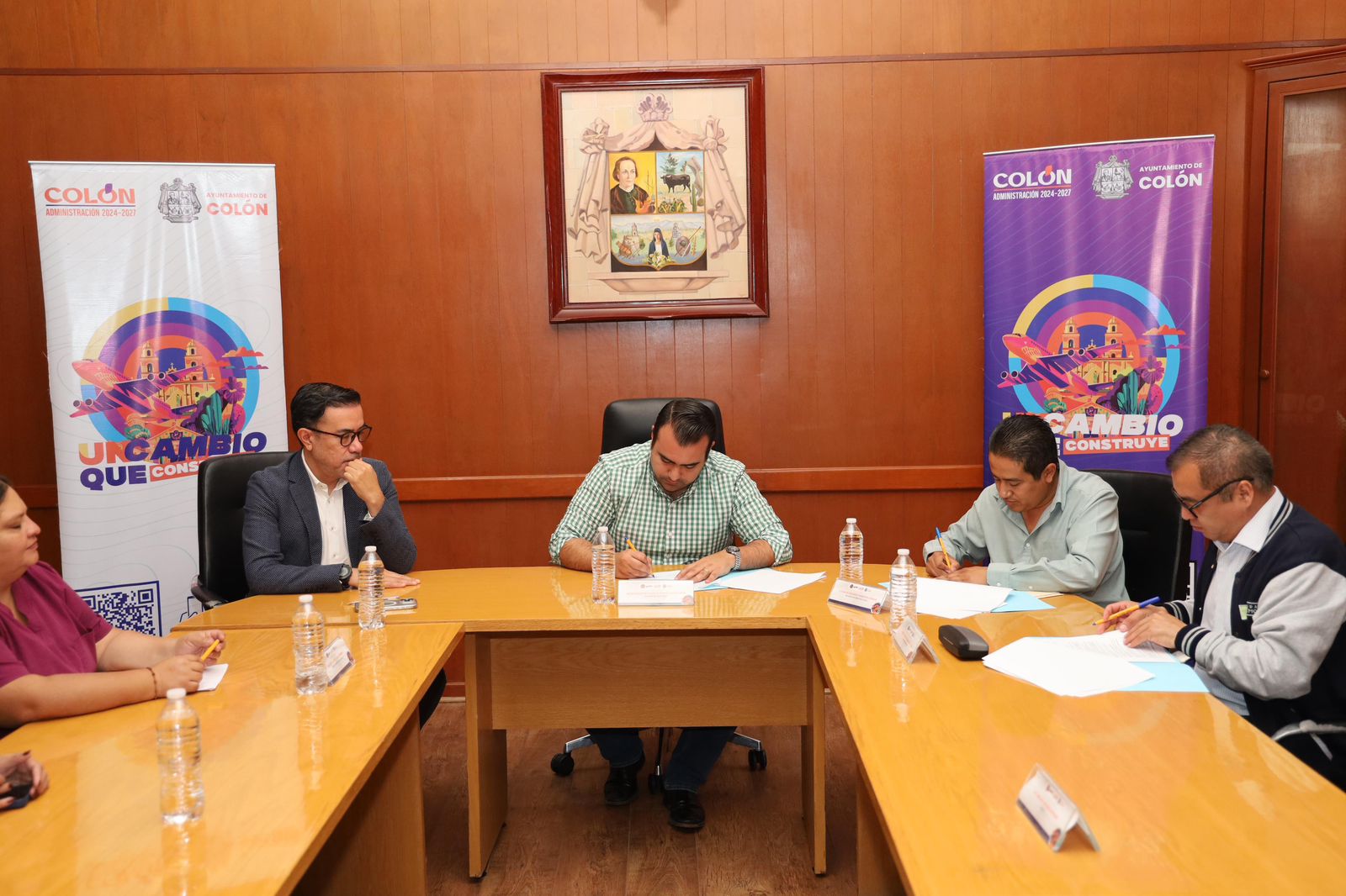 El Alcalde Gaspar Trueba Moncada presidió como testigo de honor, la ceremonia de firma de convenio de colaboración entre el Municipio de Colón y la Universidad Cuauhtémoc, representada por el Director de Innovación y Posgrados, Mario Olivares Porras.